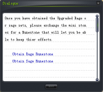 Put ur set and stone accordingly, after u upgrade ur set u will get 3x mini stones, then u need to slect the same npc and press Obtain the runestones, Select which according to the set u upgraded.